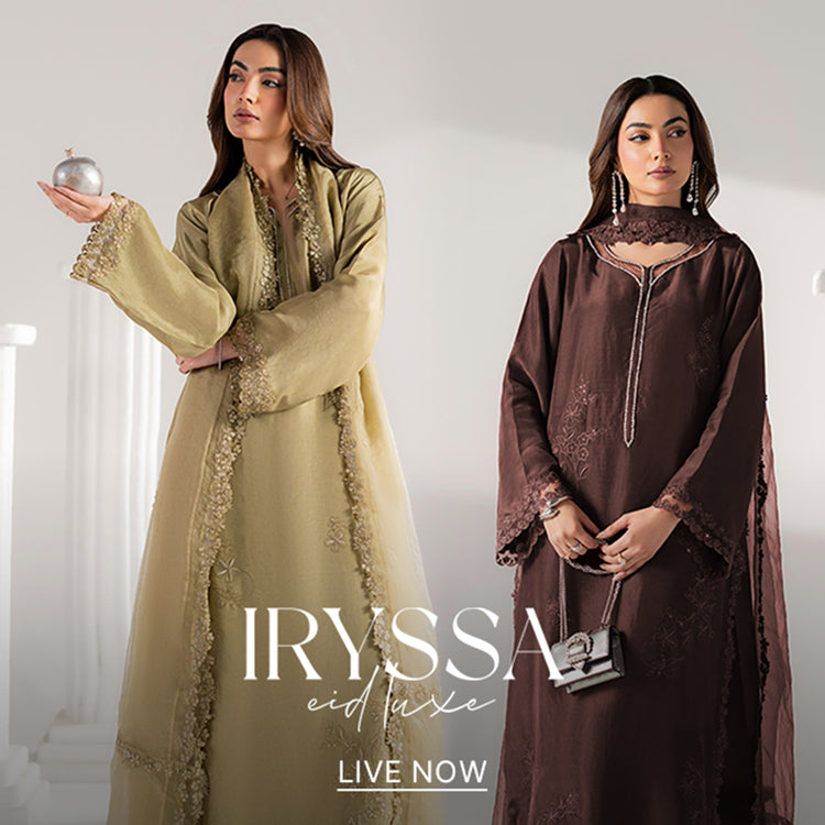 Make a graceful statement this Eid with this exquisite embroidered outfit. Featuring a straight long shirt adorned with delicate adda work and organza detailing on the neckline, and flared sleeves trimmed with sequin embroidery, every detail exudes elegance. The hem and side slits shimmer...