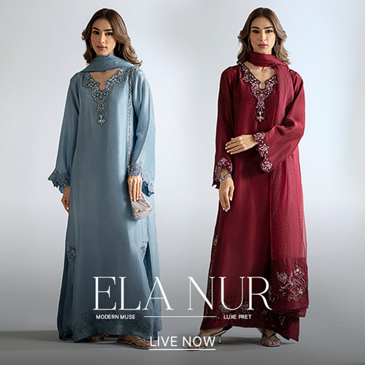 Out of your Eid Wishlist: Rose Farshi Set. It features an embroidered short shirt and our signature Farshi shalwar. Elevate the look with a medium silk dupatta, detailed with embroidery patches, for a complete and refined style.Shirt Detail: Short embroidered shirt Embroidered tapered sleeves...