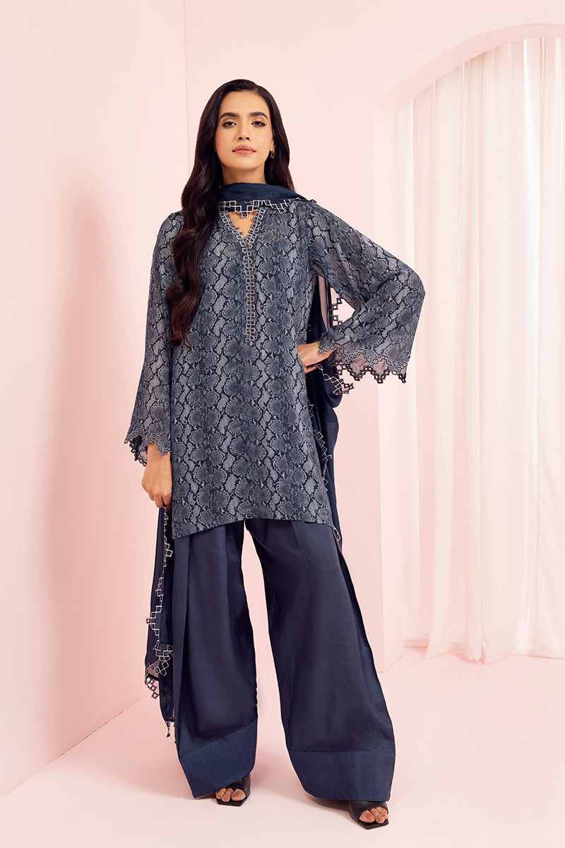 'Twixie Blue' is here to make your summer more playful. This versatile outfit combines a breezy chic shirt featuring an eye-catching print and trendy farshi shalwar. Pair it with a dupatta to elevate the look for any occasion.