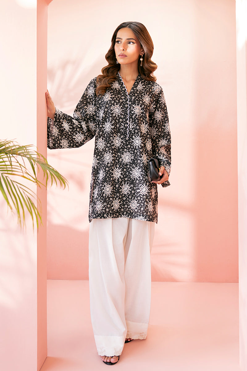 When your outfit is as sweet as your juice 'Floral Kari' is the one! Featuring chikankari shirt with embroidered details, complemented by our signature Mai Farshi Shalwar for an effortlessly chic look this summer season.