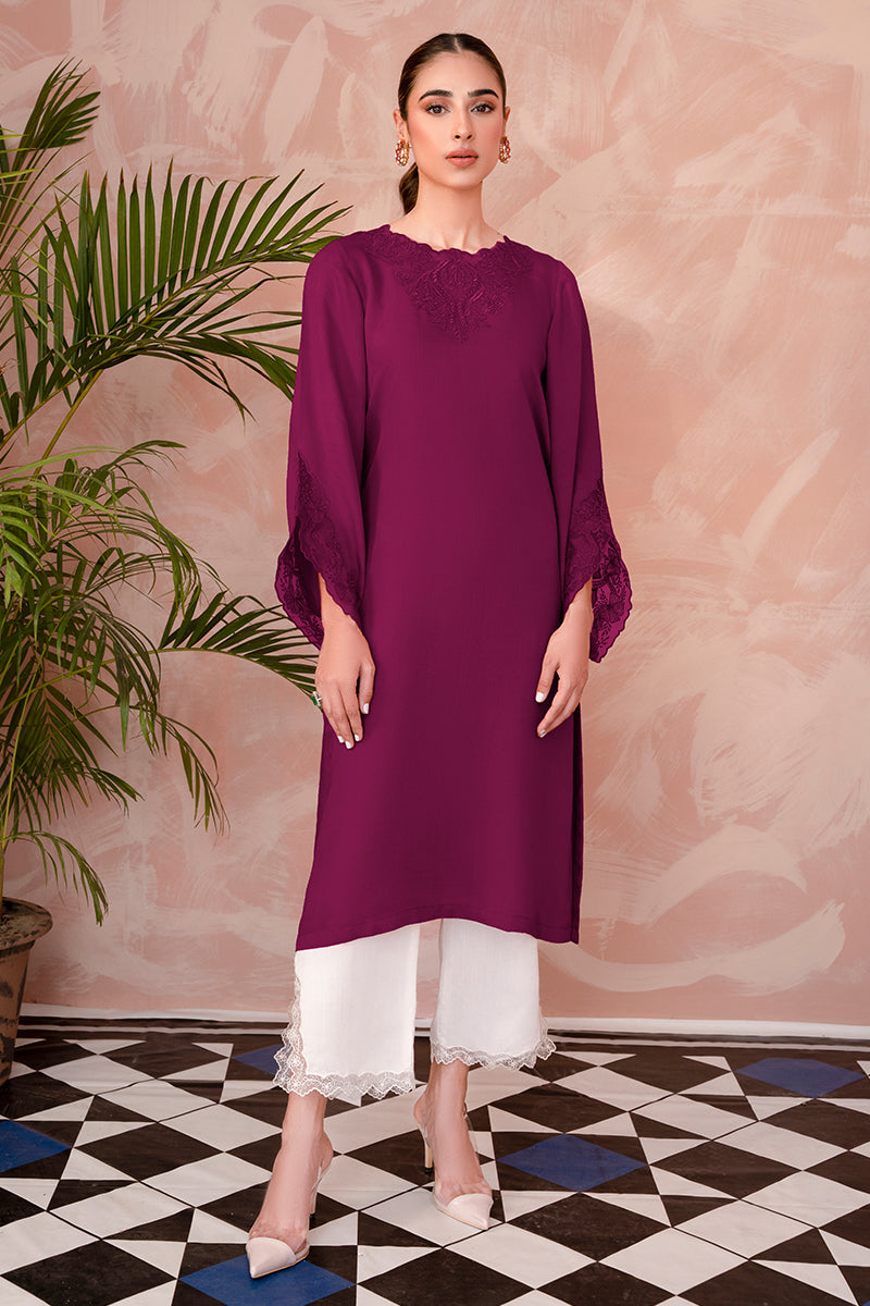 Presenting the supremely elegant Mulberry, with a deep purple hued canvas delicately adorned with flora embroideries. Once paired with organza dupatta and straight culottes this design reflects sophistication and timeless sensibility.