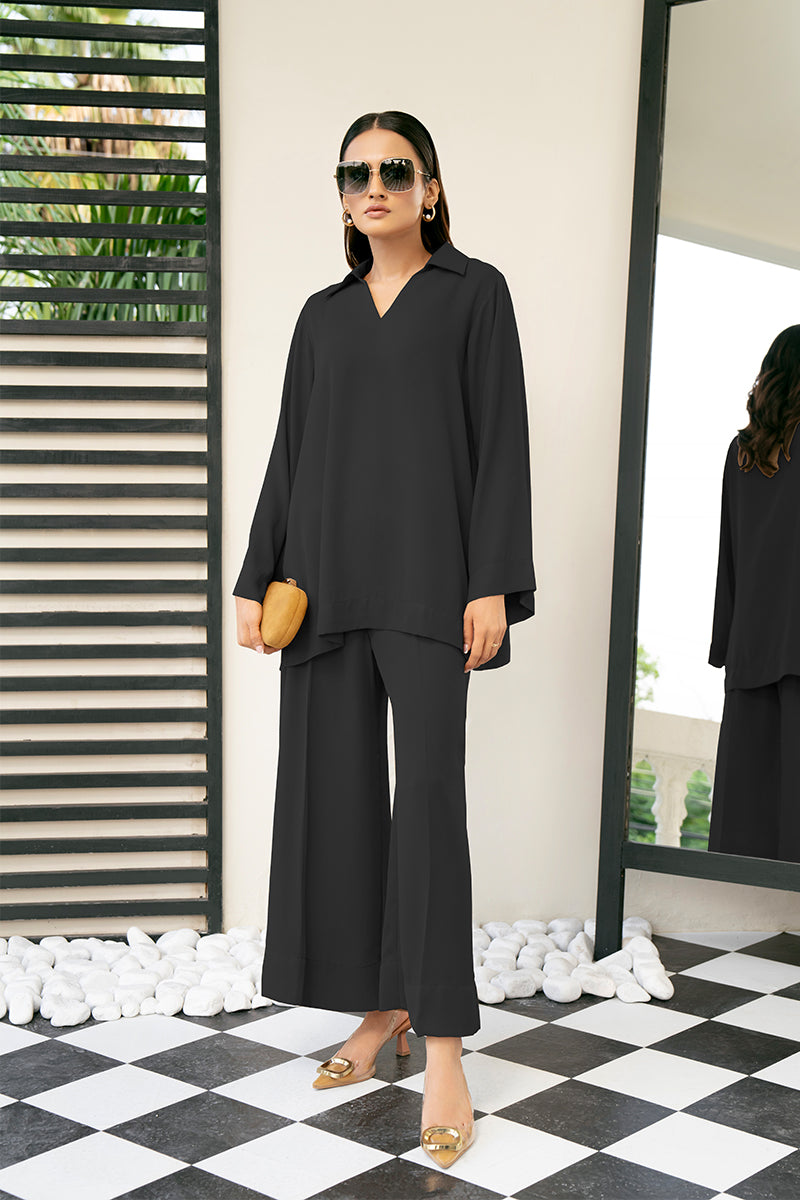 Make a statement this fall with this black co-ord set, designed to uplift your wardrobe. Perfect for transitioning from laidback days to casual evenings with ease.