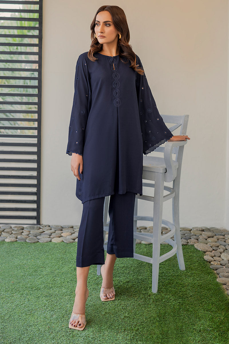 Step into elegance of 'Aristos' with embroidered neckline featuring intricate detailing that adds a touch of sophistication to your attire. Paired seamlessly with chic culottes, this ensemble strikes the perfect balance between classic charm and contemporary style.