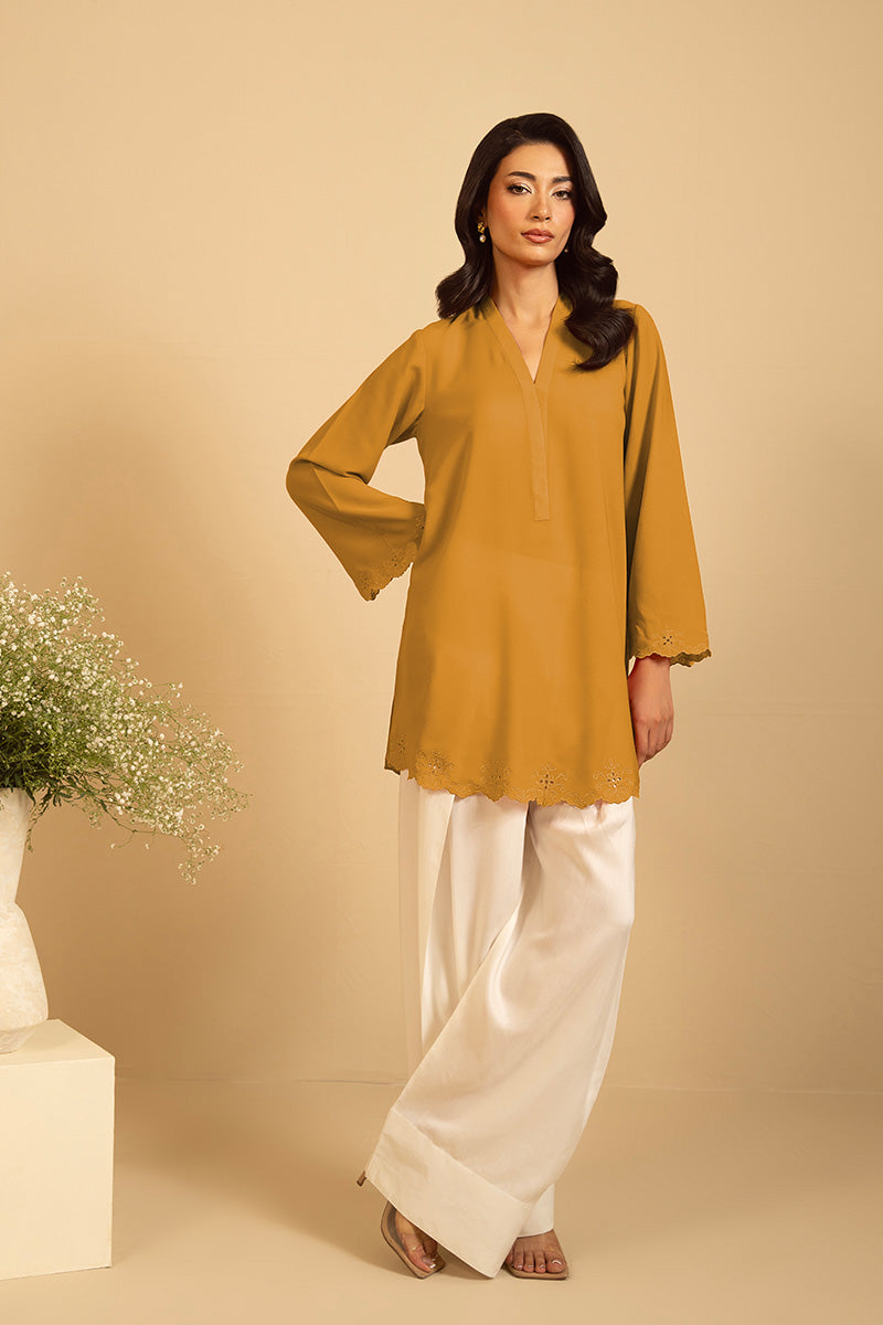 Nothing better than the 'Cleo honey', crafted from lightweight premium tropical fabric can be perfectly paired with 'Rye' pleated shalwar, perfect for hot tea moments!.