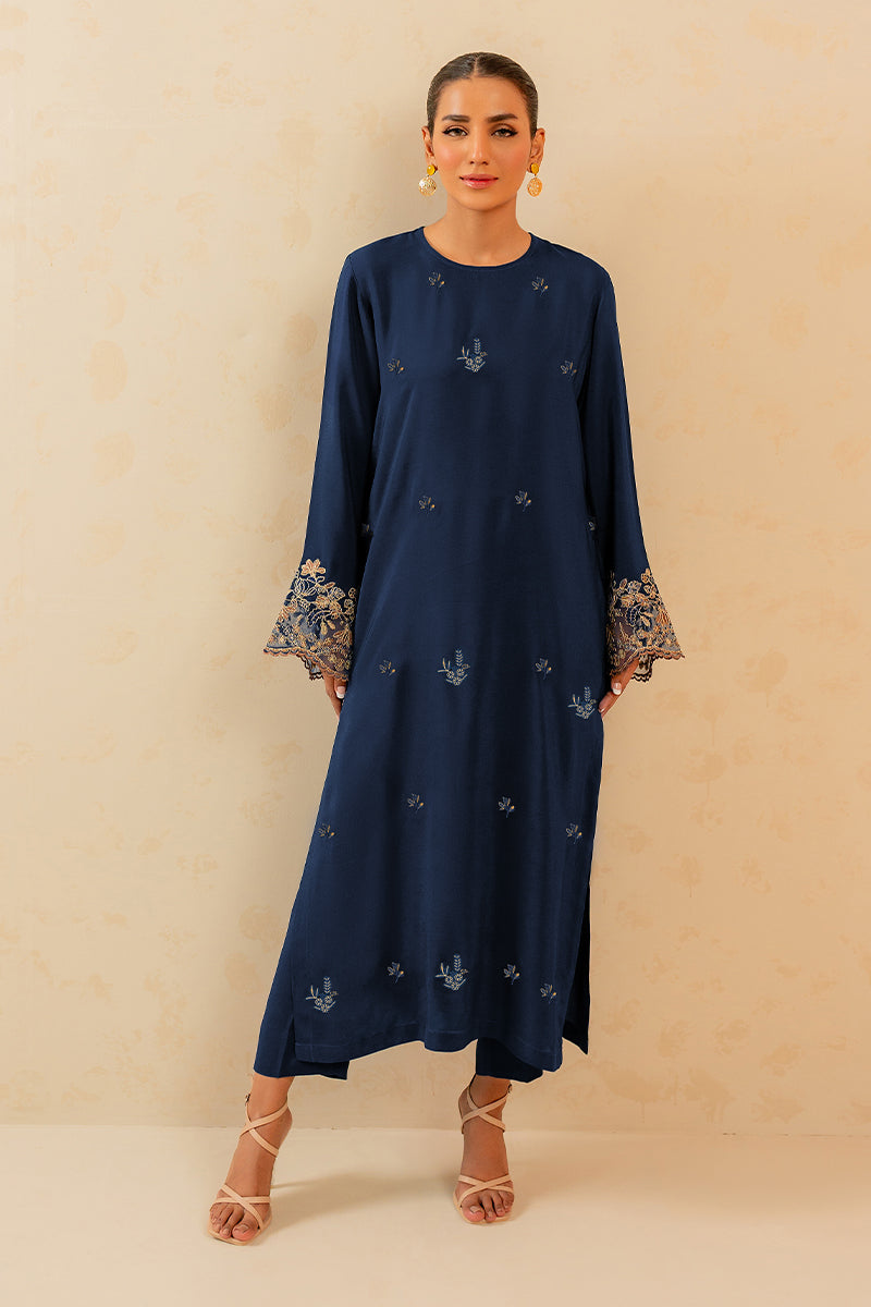 Uplift your wardrobe with ˜Delilah„¢ A luxurious 2 piece. It features a relaxed straight silhouette with overall embroidery on shirt and beautiful detailing on sleeves paired with a matching straight trouser, this outfit is definitely a showstopper.
