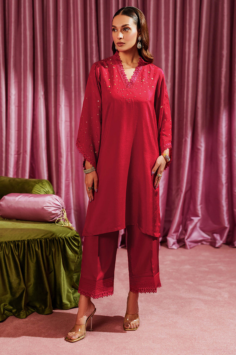 Indulge in pure luxury with Elara - a masterpiece of sophistication. Adorned with an embroidered neckline and a dazzling display of gold sequins on the shirt front and sleeves, every detail exudes opulence. Paired with loose-fitted azar featuring embroidered pati, comfort meets couture effortlessly.
