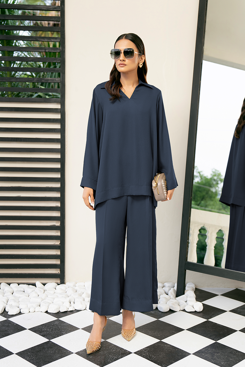 Make a statement this fall with this chic monochrome V-neck co-ord set. Its timeless design and modern details offer a versatile and stylish look.