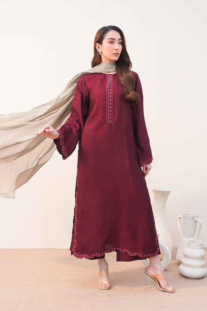 Absolutely loving the details on this one The straight shirt with contrast embroidery on the neckline and hem, flared sleeves finished with embroidered patches and frayed lace, paired with easy culottes and a contrast color-block dupatta perfect for calm, elegant moments ??