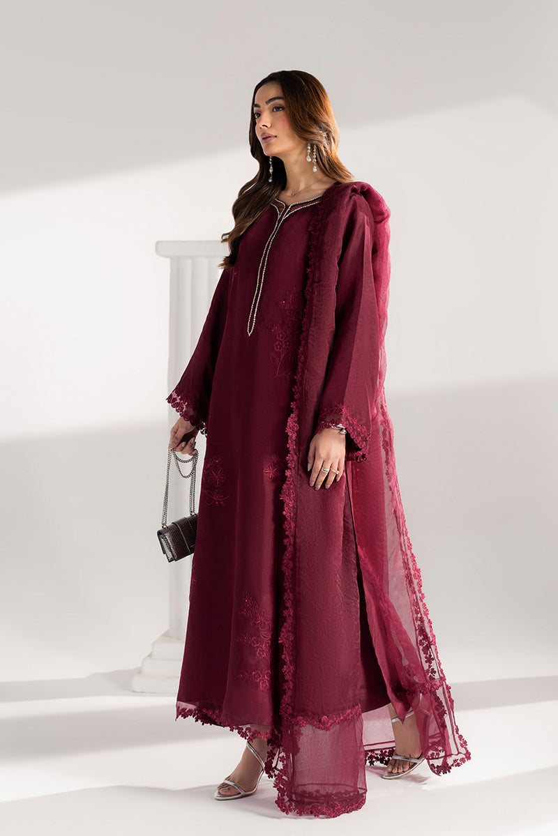 Celebrate Eid in timeless elegance with this stunning ensemble. The straight long shirt features intricate adda work along the neckline, enhanced with delicate organza detailing for a touch of sophistication. Flared sleeves are finished with an embroidered sequin border, while the hem and side slits are adorned with matching sequin embroidery, adding subtle sparkle with every movement. Paired with perfectly tailored culottes and a flowing organza dupatta with embroidered borders, this outfit combines comfort, grace, and festive charm — perfect for Eid celebrations and family gatherings.