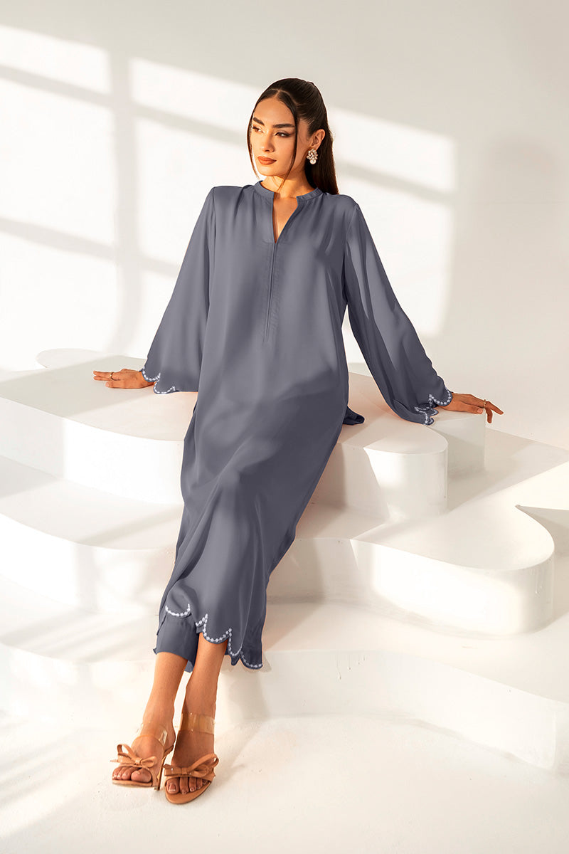 When in doubt, go pastel! The perfect 'Lily Slate' whether you're heading out or staying in. Featuring a pastel long shirt with embroidery details, paired with matching trousers to complete the look.