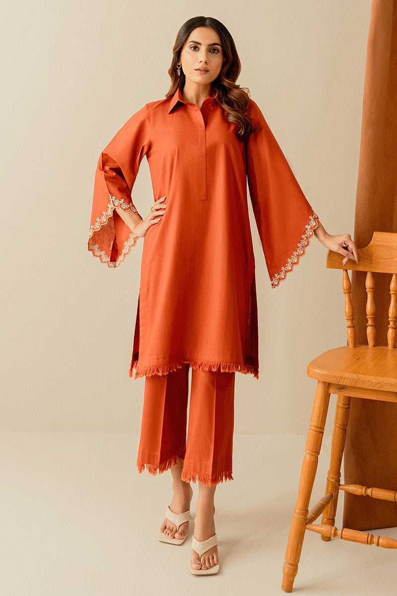 Milano - A perfect blend of sophistication and modernity creating a seamless ensemble. The straight collared shirt with embroidered cap-cut sleeves and frayed hem is layered over matching culottes with frayed edges to create a modern and comfortable wardrobe essential.