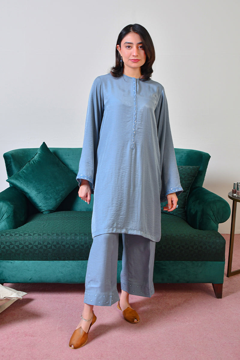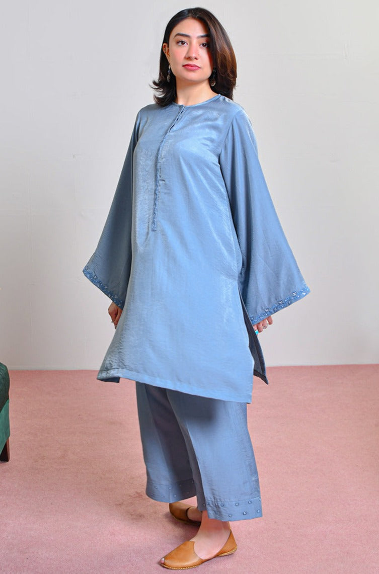 Embrace fusion fashion with "Noura " this stunning printed A-line shirt boasts a kurta patti embroidered neckline with delicate embroidery adorns the sleeves with beautiful embroidery gracing the bottom of the flowy culottes. This dress is a perfect blend of tradition and contemporary style, ideal for making a statement at any event.