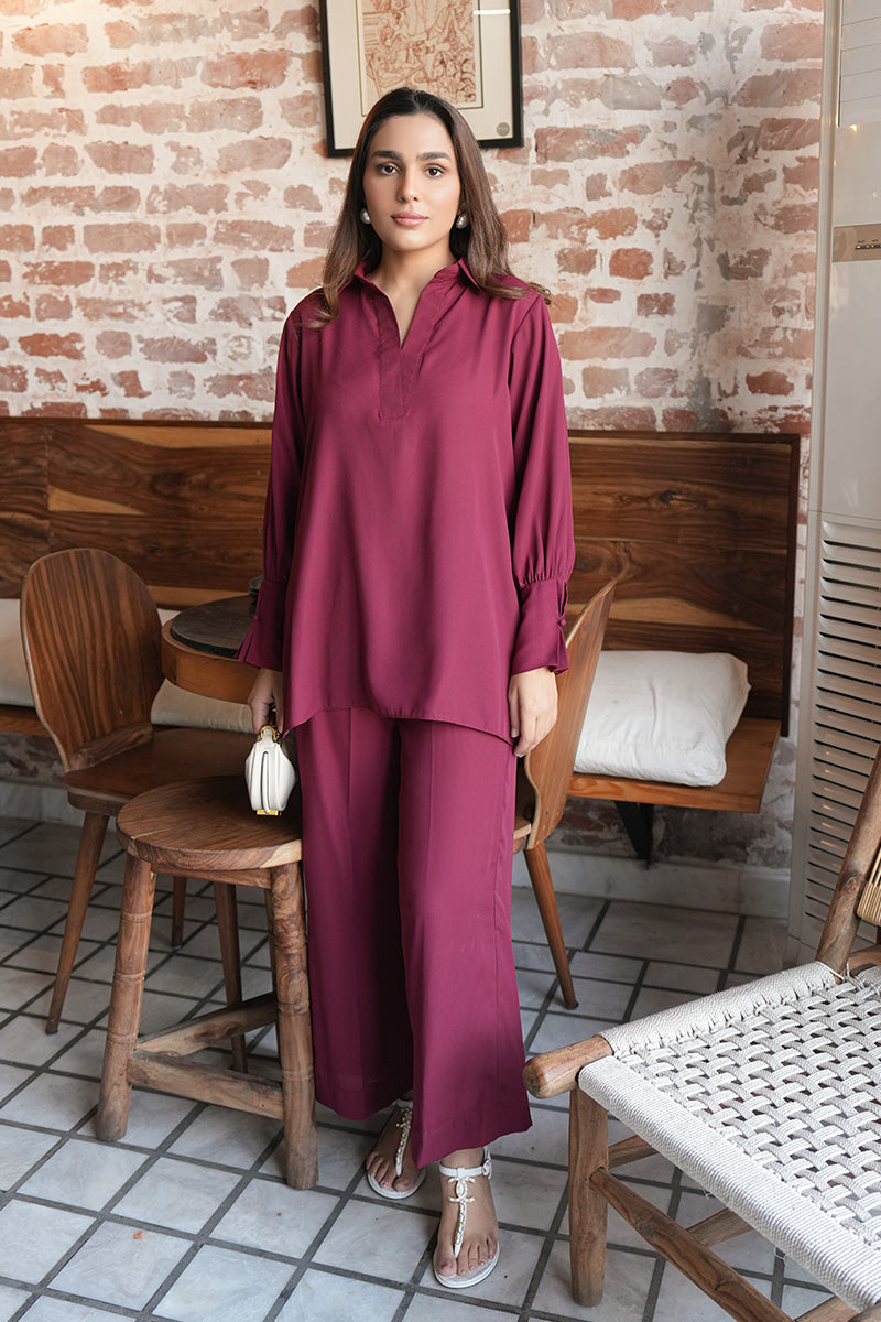 For days when you want comfort without compromising style, the Renee Set delivers a modern V-neck top with soft, pleated sleeves and matching culottes in a clean monochrome palette.