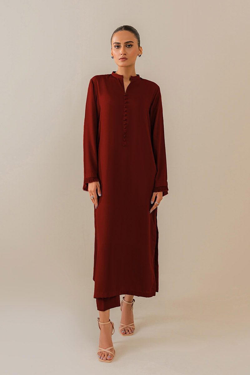 Introducing Rivulet - a stylish two-piece with trendy loop buttons and subtle frayed edges, this outfit effortlessly combines relaxed comfort with a touch of elegance. Paired perfectly with matching straight trousers, it gives you an easy and stylish look.