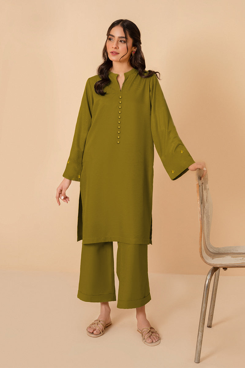 Envelope yourself in olive green hues with this basic co-rd set, perfect for the upcoming season.