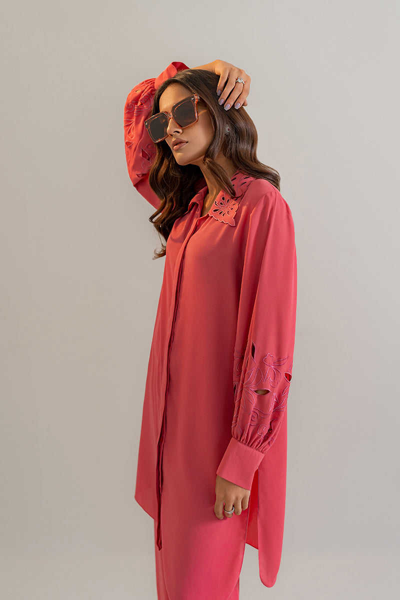 Envelope yourself in ˜rosaline„¢, a luxurious silhouette with intricate embroidery on sleeves and neck collar paired with matching straight trousers. Gives you a casual vibe with a touch of chic.
